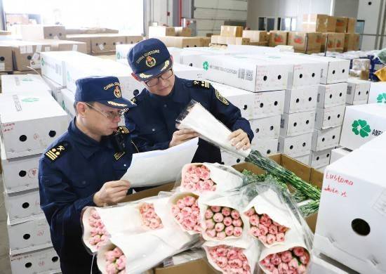 海关关员在昆明机场口岸对出口鲜切花进行检查。马舒娴 摄